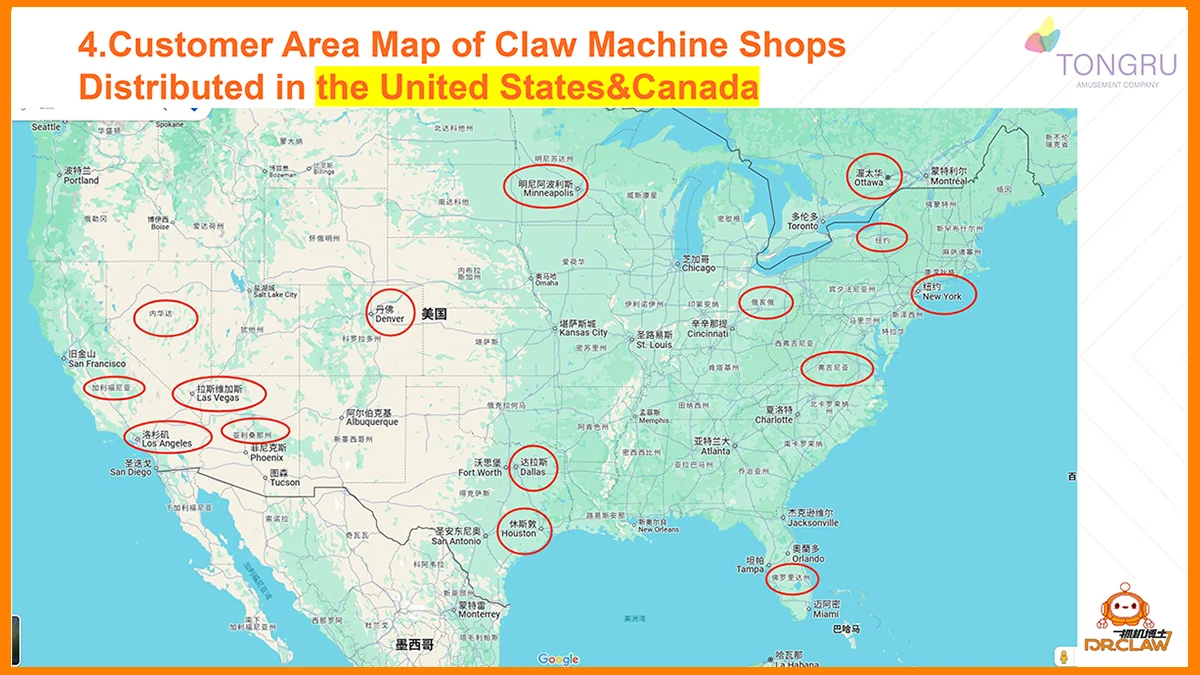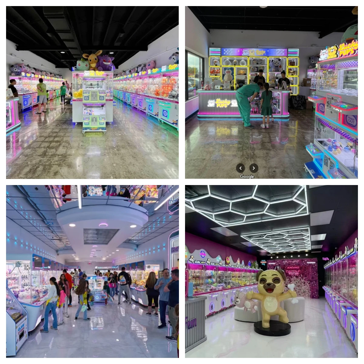 500+ claw shops opened in United Sates produced by TONGRU, and the genius record the world largest claw shop, 500+ out of 1200 machines were produced by TONGRU. We are an export to help you open a new shop with full size doll machines & various toys.